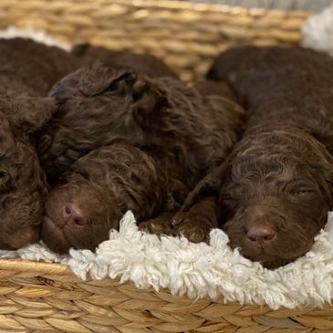 These Goldendoodles and Aussiedoodles are my family. I have the great pleasure in seeing them grow in a loving family environment. In our home for the first eight weeks and have greater pleasure in seeing them go to wonderful homes. I work with the puppies on Pad training or grass training. As well as crate training and small commands like sit, stay and lay.